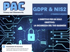 Il punto di partenza è l’analisi della propria situazione informatica e della compliance normativa. Suggeriamo un passaggio sul sito www.conformitadigitale.it  alla pagina Progetto PAC  dove, compilando una breve Check list si ottiene, in modo gratuito, una prima informazione sul proprio stato e sugli interventi eventualmente necessari per procedere in sicurezza.