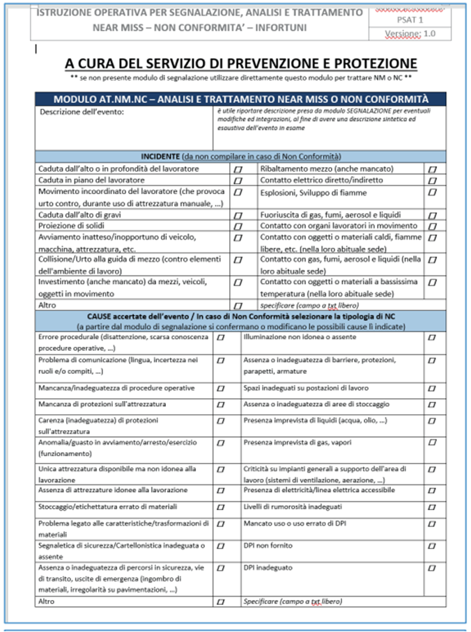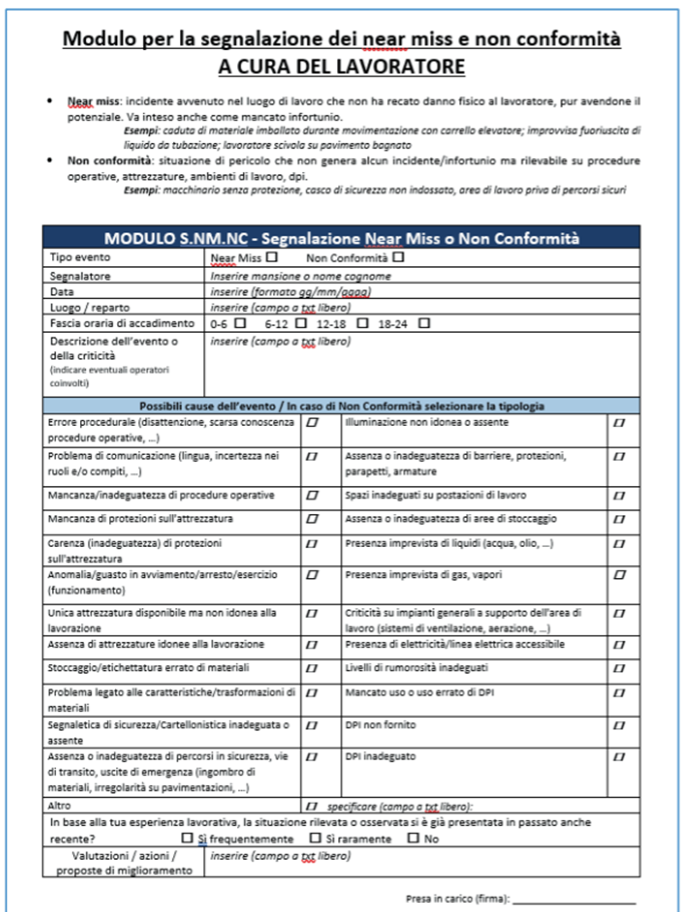 - dovranno rilevare gli eventi che avrebbero potuto generare un infortunio;